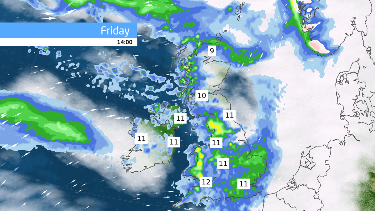 💦 Wind and rain already over Ireland, Northern Ireland and Western Scotland will slowly spread east.