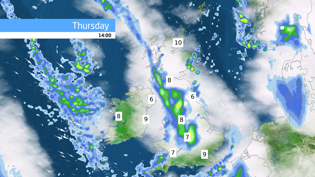 Heavy rain crossing central parts of the country - showers to the north and west - drier in the...
